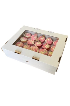 Pudełko na muffiny z okienkiem 43x32x10 cm z wkładem na 20 muffin białe