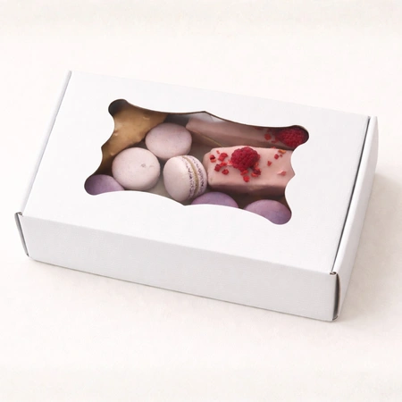 To białe pudełko z okienkiem w rozmiarze 20×15×5 cm sprawdzi się idealnie do pakowania ciastek, pierniczków, makaroników i innych słodkości. Wykonane z eleganckiej tektury prążkowanej typu ECO – prezentuje się profesjonalnie, a jednocześnie jest przyjazne dla środowiska.