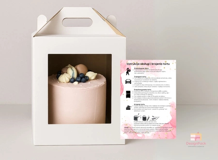 Pudełko na tort z okienkiem 22x22x32 cm białe z Instrukcją obsługi tortu