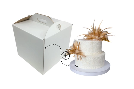 Kluczowe elementy tego zestawu to: karton na tort wykonany z tektury falistej jednostronnie bielonej, który jest nie tylko sztywny i wytrzymały, ale także prezentuje się estetycznie i elegancko. Wygodna dodatkowo wzmocniona rączka ułatwia przenoszenie. Prosty system składania. Zestaw zawiera także podkład styrodurowy o grubości 2 cm, który gwarantuje stabilność i bezpieczeństwo dla tortu- na tak sztywnym podkładzie unikniesz ryzyka popękania tynku. Podkładka, przyklejona do styroduru, posiada atest do kontaktu z żywnością, co oznacza, że możesz bezpiecznie umieścić tort bez obaw o zdrowie i bezpieczeństwo. To idealne rozwiązanie, jeśli bezpieczeństwo Twojego tortu jest absolutnym priorytetem. Dzięki jej gładkiej powierzchni dobrze się czyści i nie wchłania tłuszczu, dzięki czemu możesz nakładać tynki bezpośrednio na podkład i łatwo usuwać nadmiar za pomocą ściereczki czy packi. Neutralny biały kolor podkładu przyczyni się do swobodnego dostosowania wyglądu tortu do własnego stylu i gustu.